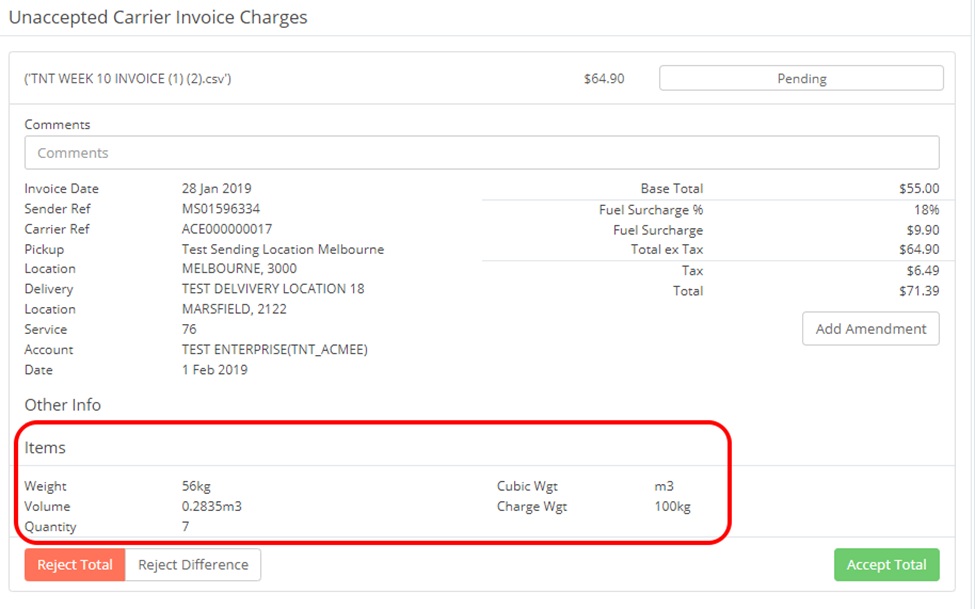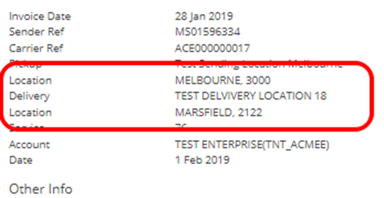 To check this MachShip will provide you with the sending and receiving suburb details from the carrier invoice (if applicable) through the Unaccepted Carrier Invoice Entries.