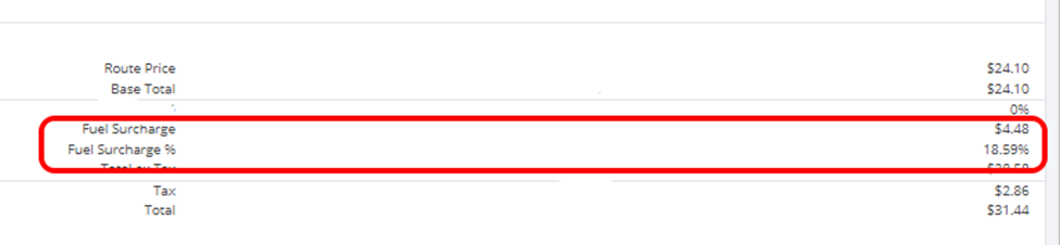 MachShip will show a discrepancy in fuel surcharge in the following way:
