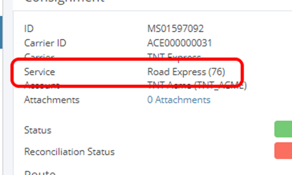 The service that the consignment was booked on will be shown in the top right-hand corner of the balance screen: