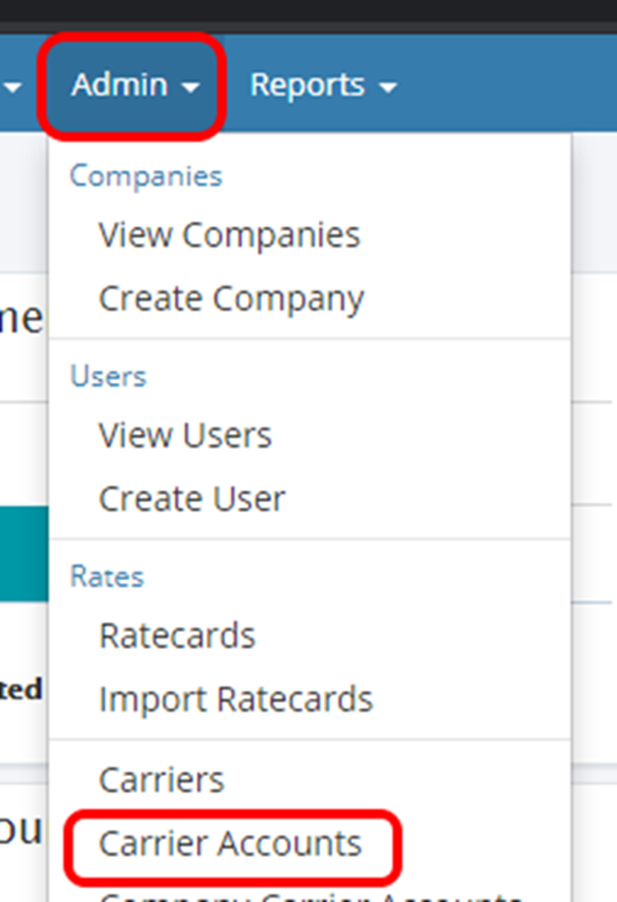 To navigate to the carrier accounts section go to Admin > Carrier Accounts.