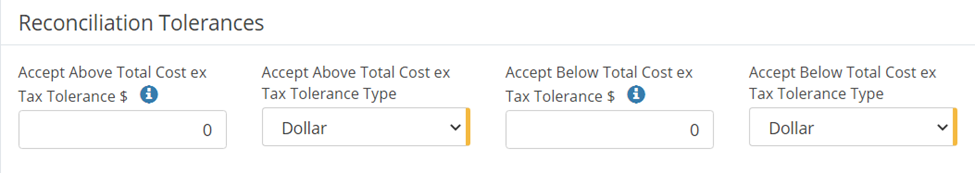 If you wish to set a series of custom tolerances then fill out the reconciliation tolerances table.