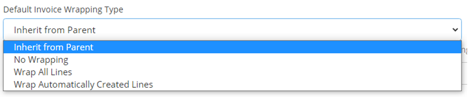 Select from the 3 Invoice Wrapping types available. Note that the default is No Wrapping.